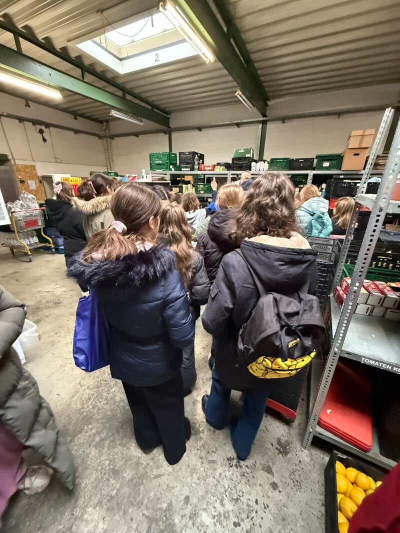 Wir besuchten die Tafel in Grevenbroich für unser „Lernen im Projekt- Thema „Kein Hunger und Lebensmittelverschwendung“. Bei der Tafel haben wir uns mit einem Mitarbeiter getroffen, erst haben wir uns den Raum angesehen wo die Lieferungen eingeladen werden, die dann zu den Kunden gebracht werden. Wir haben uns auch da hingestellt, um Forscherfragen über die Tafel zu stellen die wir uns im Lernen im Projekt ausgedacht und überlegt haben.